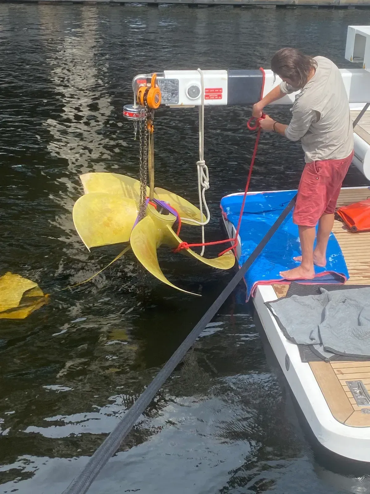 Convenience: We expertly remove and install propellers right at your slip, moor, or anchorage. This eliminates the significant expense, effort, and scheduling hassle of a traditional boatyard haul-out, often saving you thousands.